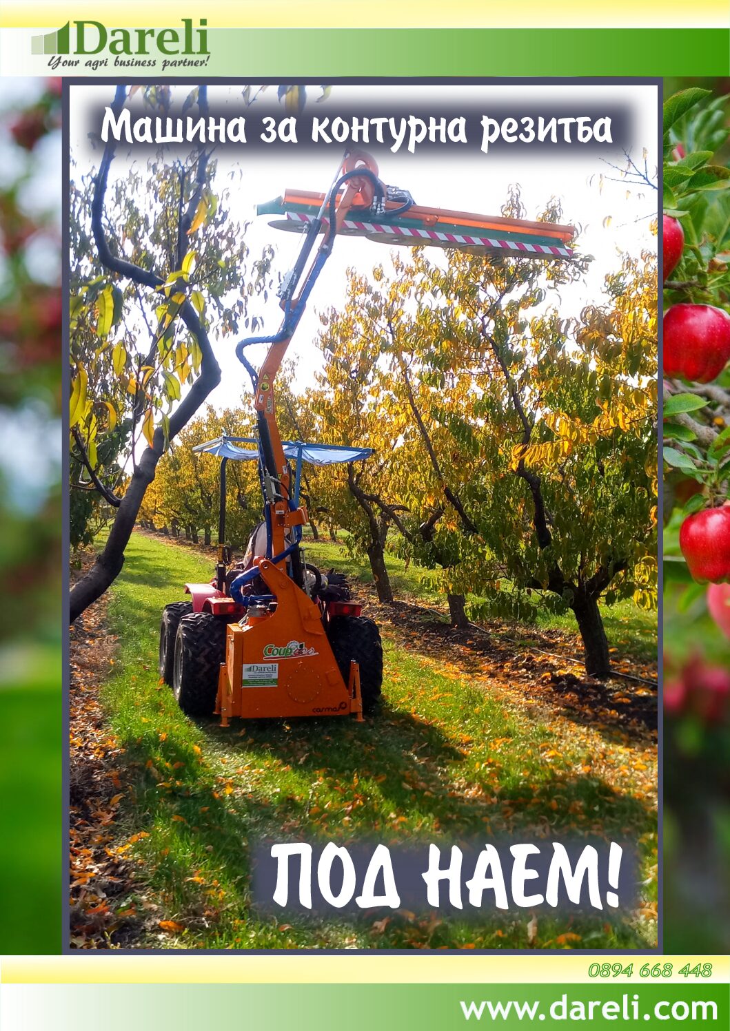 Днес споделяме видео изпратено ни от наш клиент, който е взел машината за контурна резитба #Cosmos101#ПОДНАЕМ от нас. Вижте във видеото как той се справя бързо и лесно с оформянето на насажденията си. Ако и Вие искате механизирана професионална резитба с минимални усилия, свържете се с нас и резервирайте машината за контурна резитба: 089 466 8448